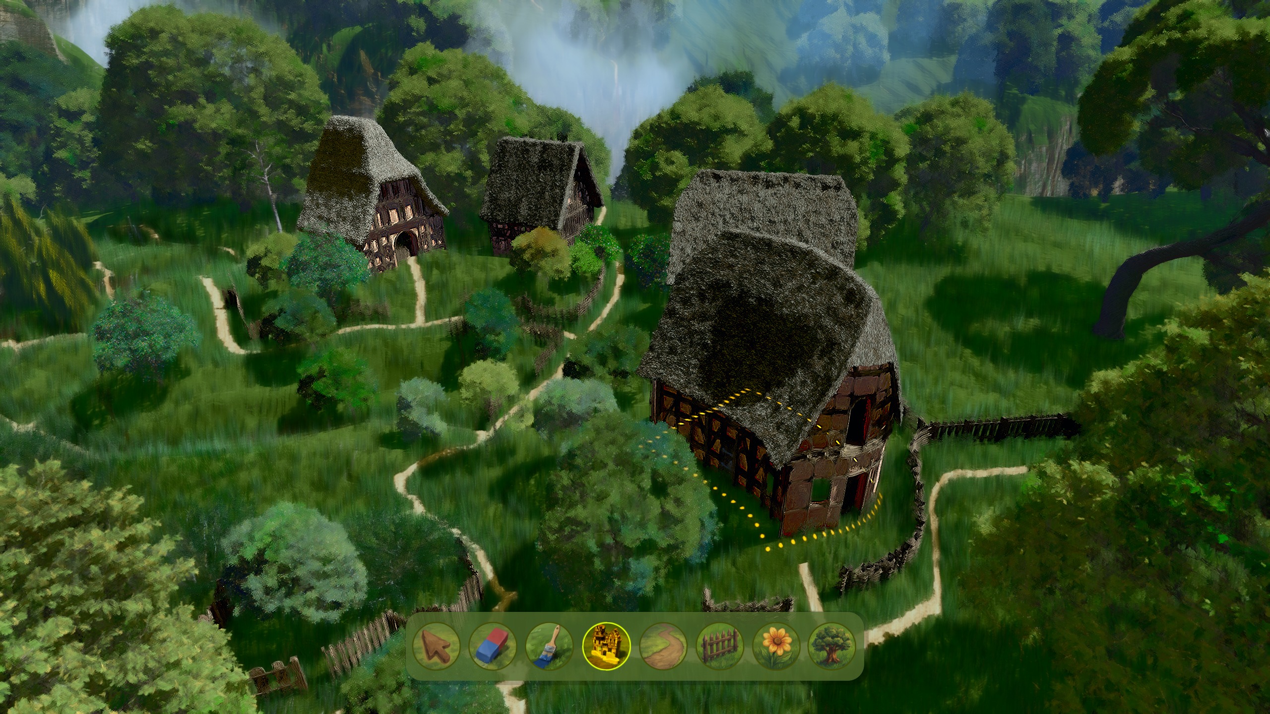 WeidenGrund is a meditative village diorama builder woven into a living landscape. Place detailed Fachwerk homes, bend organic paths through tall meadows, and grow a tranquil countryside sanctuary beneath mountain mist.